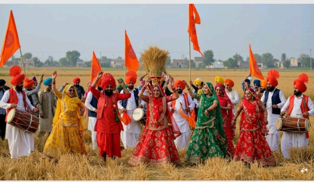 Baisakhi is celebrated with great joy in punjab. Baisakhi= Harvest celebration+Religious Significance